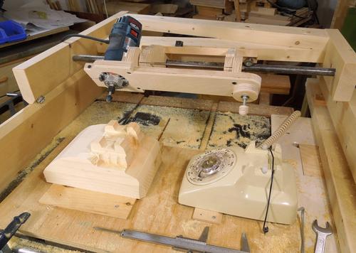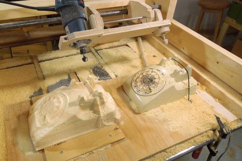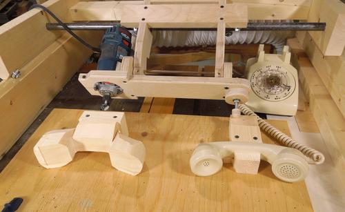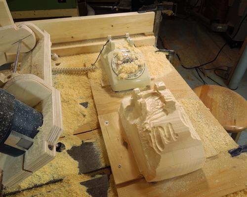 And you may ask "why would you copy a phone?" - well, I figured it was a neat and unusual yet familiar shape to try to carve out of wood. And really, most "carvings" aren't actually useful. Although I suppose I could copy useful items with the machine - like violin backs, guitar necks, or gun stocks. But I'm not building any of those things. I could always make some spoons, but I think carving a phone is way cooler!