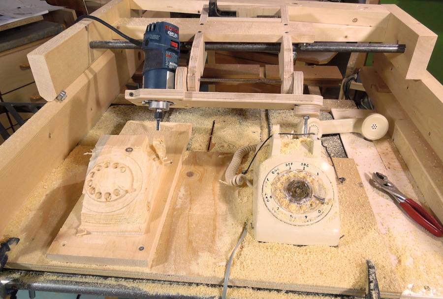 I switched to a 1/4" (6mm) router bit to do the holes and other details around the dial. With the tilting ability of the copier, I was able to get right into thed finger holes on the dial.