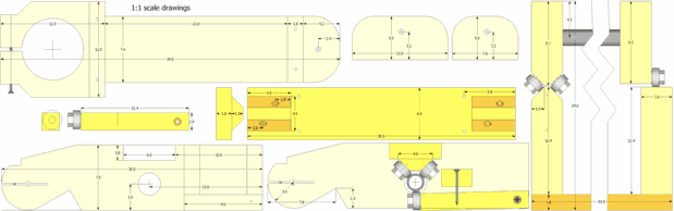 1:1 printable templates There are 1:1 printable templates for many of the parts. These are useful for checking part sizes by placing them on the paper or, for some parts, pasting the template onto plywood for cutting out. The templates are as a PDF, segmented to fit on regular letter (8.5x11") or A4 sized paper. A diagonal grid across all the pages makes it easy to align the pages when gluing them together as one sheet.Also included are contiguous images that can be loaded into the free eval version of BigPrint (for Windows), which, on recognizing the images, will act like the full version while that image is loaded. This allows you to optimize printing for any size paper.
