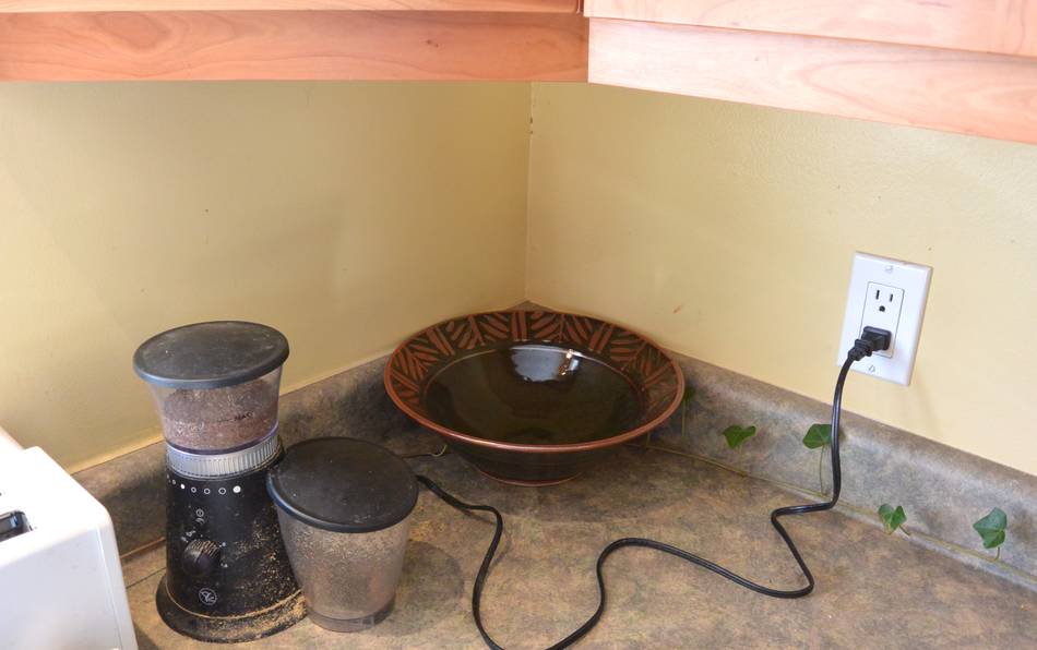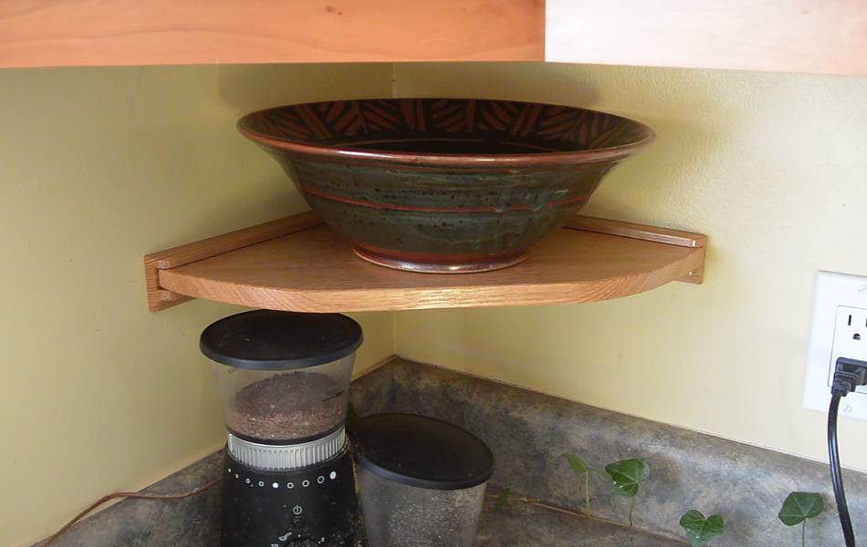 What prompted this corner shelf is the salad bowl in this picture. We use it probably