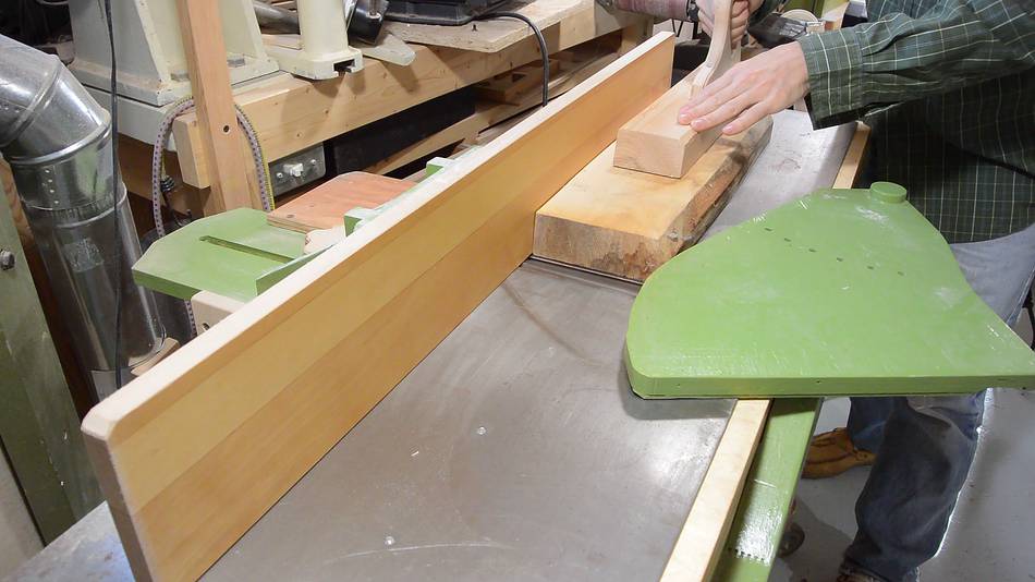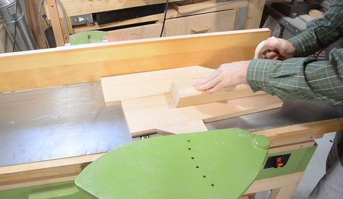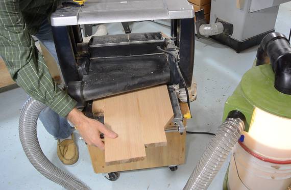 Once the glue dried, I ran the shelf over the jointer and through the thickness