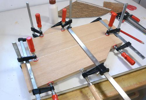 Gluing it up. The smaller clamps pressing down on the joint help to ensure