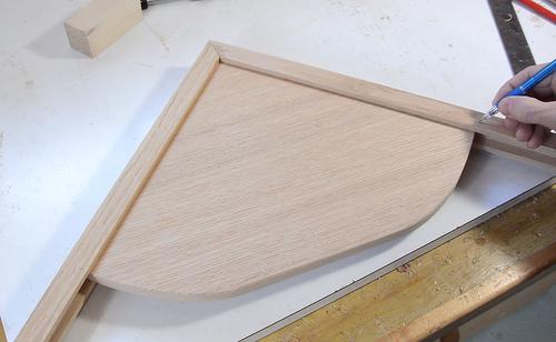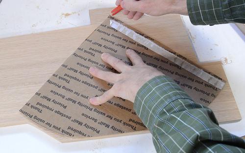 I made a mockup of the shelf shape out of cardboard. Here I'm checking