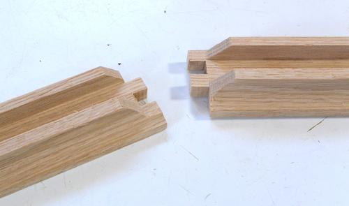 The bottom side of this rail is a bit wider, with a decorative cove cut in it.