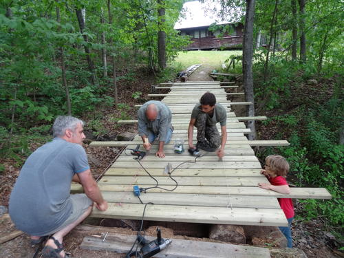 One of the beams on one end of the bridge seemed to be a little bit "low" so we took the decking
