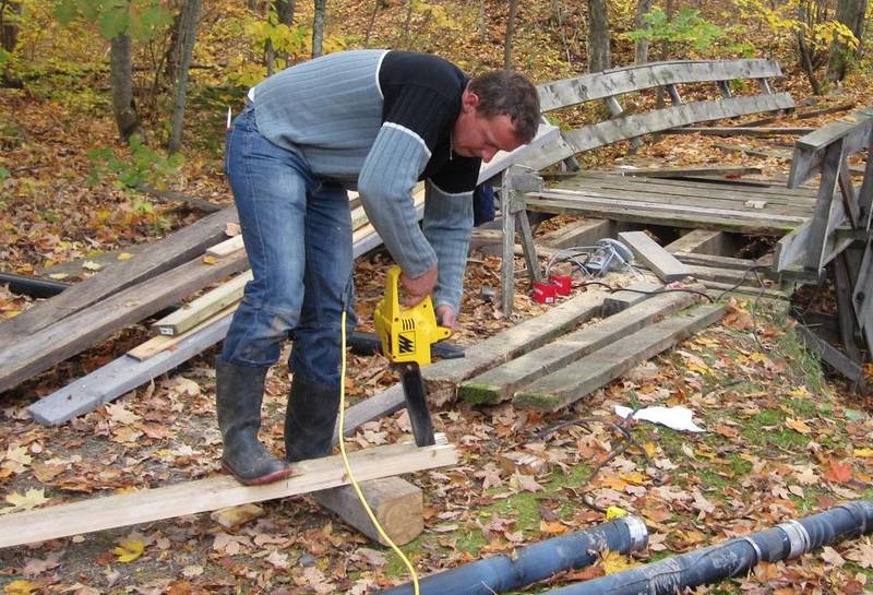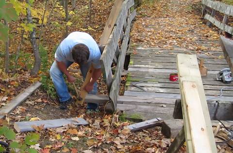This time around, where the old supports had let go, we just extended the planks out a bit