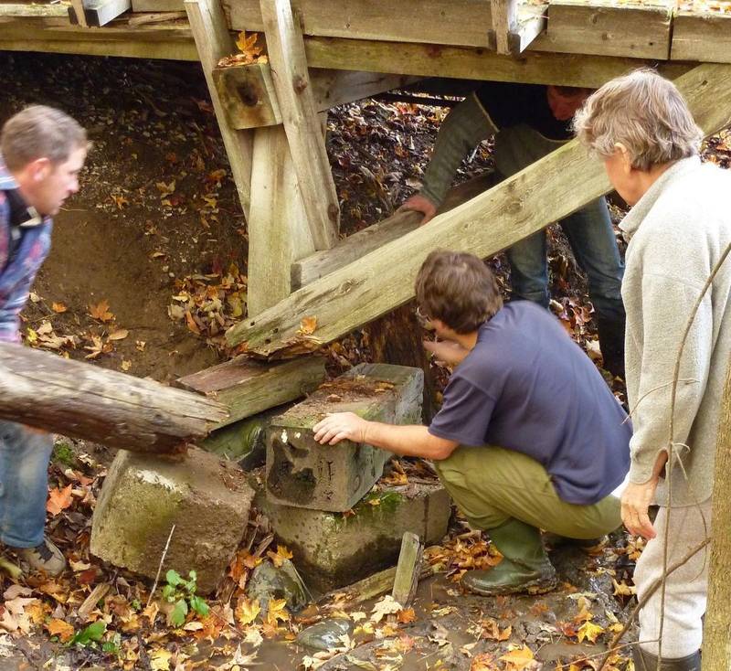 The ground consists of 100% muck that goes much deeper than we cared to dig. Pilings driven deep into the ground would probably be the only solid way of getting a footing, but that old bridge doesn't justify the expense of bringing in heavy equipment to work on it.
