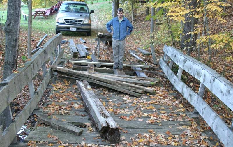 But the white cedar beams supporting bridge were all still quite solid, which is quite