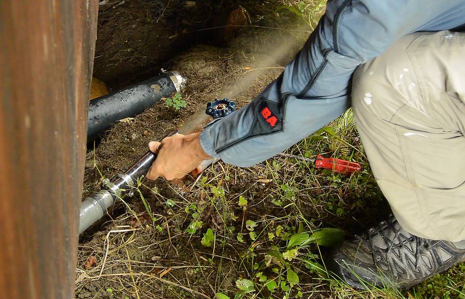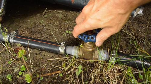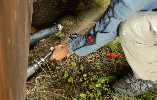 I start in each of the 9 buildings by closing the main shut-off valve.