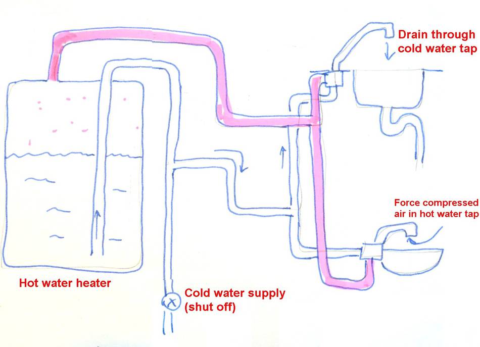 I can't get all the water out of the drains this way, so antifreeze still needs to be added, but getting as much water as possible out certainly helps.