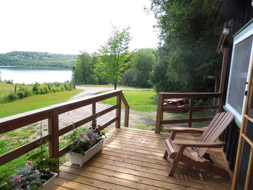 The cottage is not directly on the lake, a 400 ft walk to the boat dock.