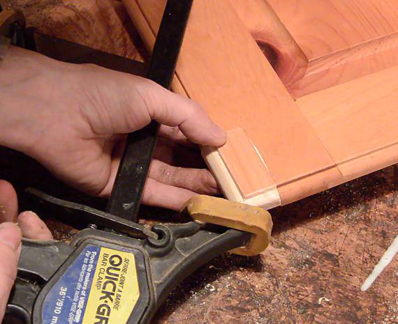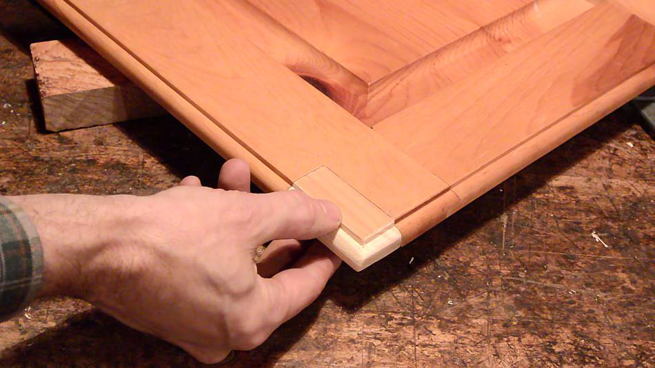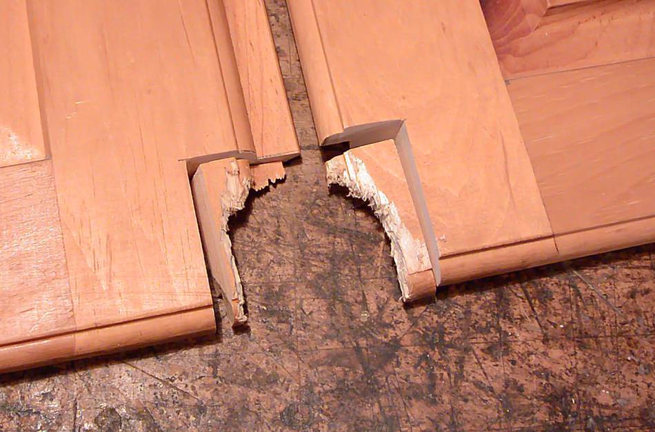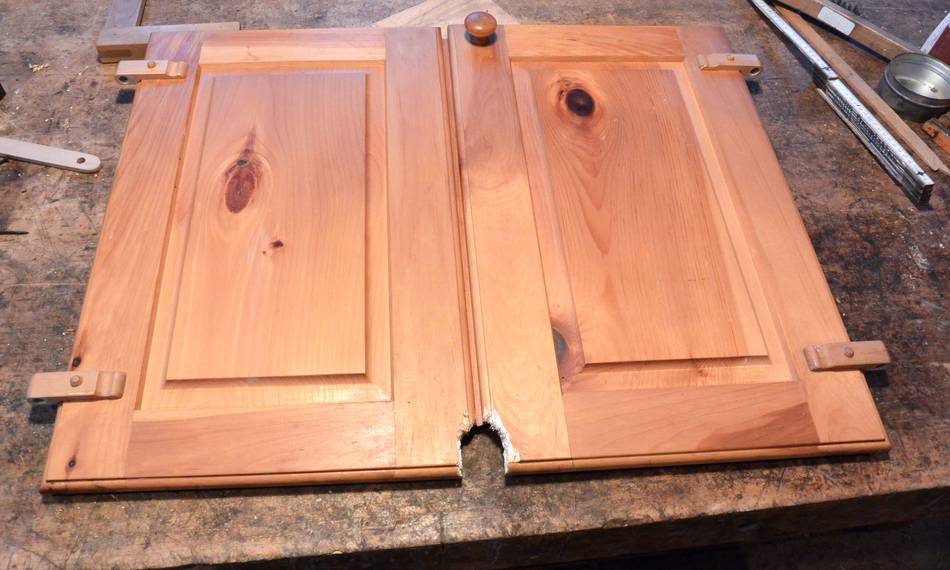 And here's another cabinet door repair. This one reinforcing the frame because it cracked