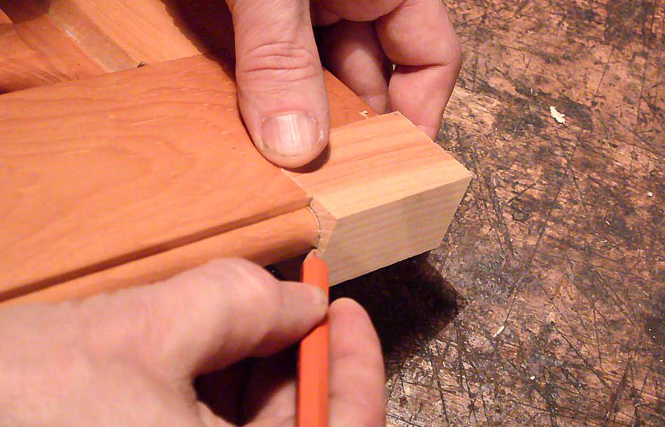Here, I'm tracing the profile of the moulding onto the block.