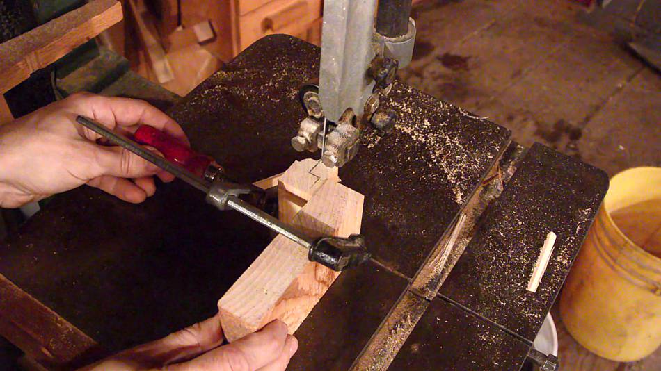 I cut the moulding shape on the piece upright on the bandsaw. I clamped