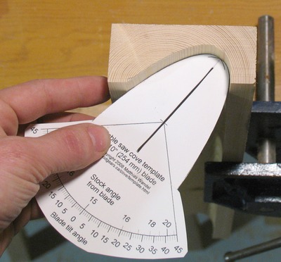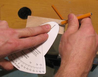 template can indicate. A line drawn perpendicular to the piece of wood must go through
