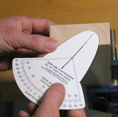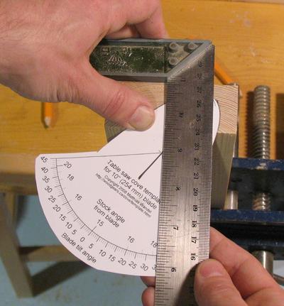 the outside scale indicates the blade tilt angle. For this particular cove template