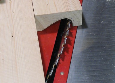Asymmetric coves can be cut on a table saw by not only passing the stock over the blade