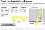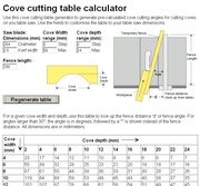 Rather than generating an angle, the cove cutting table calculates the distance from the fence that the temporary fence should have at the near side for smaller angles up to 30 degrees. That way, there's no need to mess with a protractor.