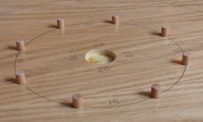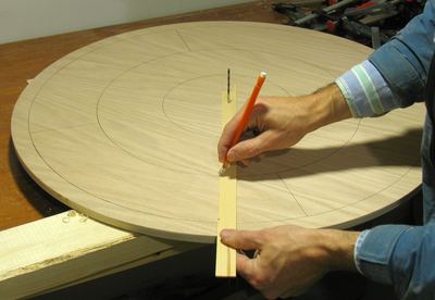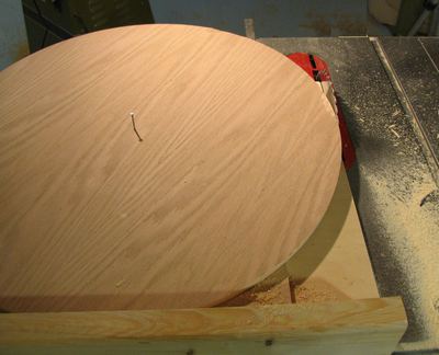 The next step is to cut the main playing board. The board itself is a circle of 26" diameter,