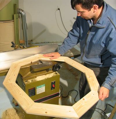 For the octagonal surround, I resawed a short 2x4 to two boards 3.5" wide. To join the pieces