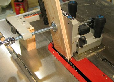 Also note the supporting block of wood attached to the tenon jig on the left. With the tenon jig mostly being above the table saw throat insert while making the cut, giving it a bit of extra support by attaching a block of wood really helped.