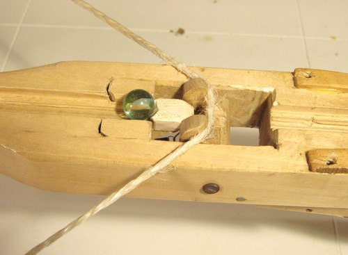 releasing the string. You can see the head of the nail that I used as a shaft for the hook
