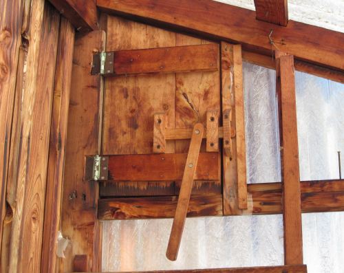 A vent at the top of a small greenhouse my parents built on the south