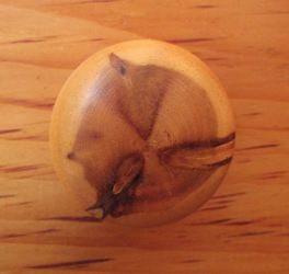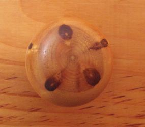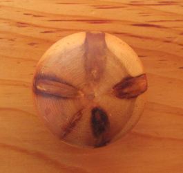 My dad always turned his own knobs. He liked to use the core of some white pines for that. The knots in evergreens form this neat star pattern because they produce one new set of branches emerging from the same spot each year. Hardwood trees are a bit more random with how they branch out, so you never get a star pattern like that.