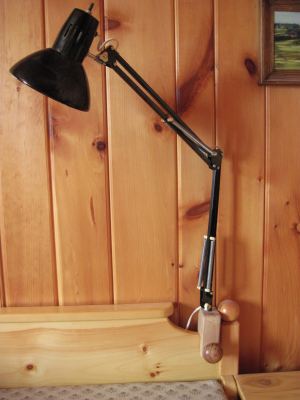 So for this lamp by the bed, my dad made a clamp to attach to the bed. The knob