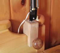 on the clamp is attached to a dowel with a wooden thread cut into it, and it