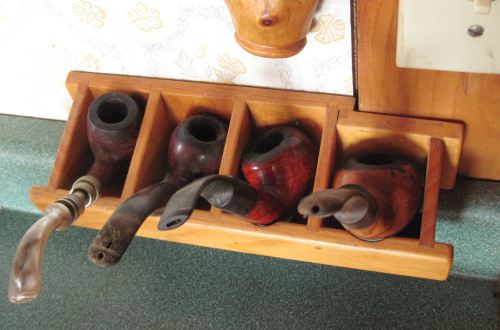 My dad has always smoked a pipe. He made this little pipe rack to store his pipes in.
