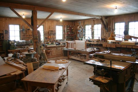 This shot shows the thickness planer, jointer, and radial arm saw in the background.