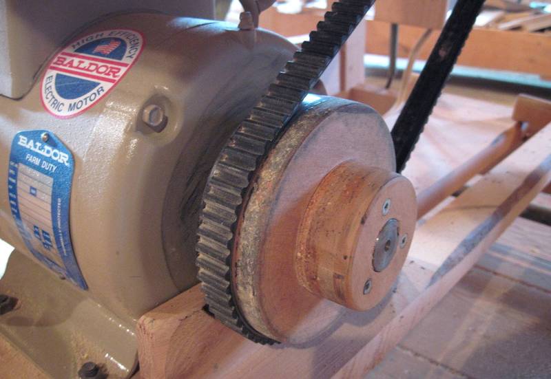 The motor pulley is made out of wood. It's a 1750 RPM motor, so