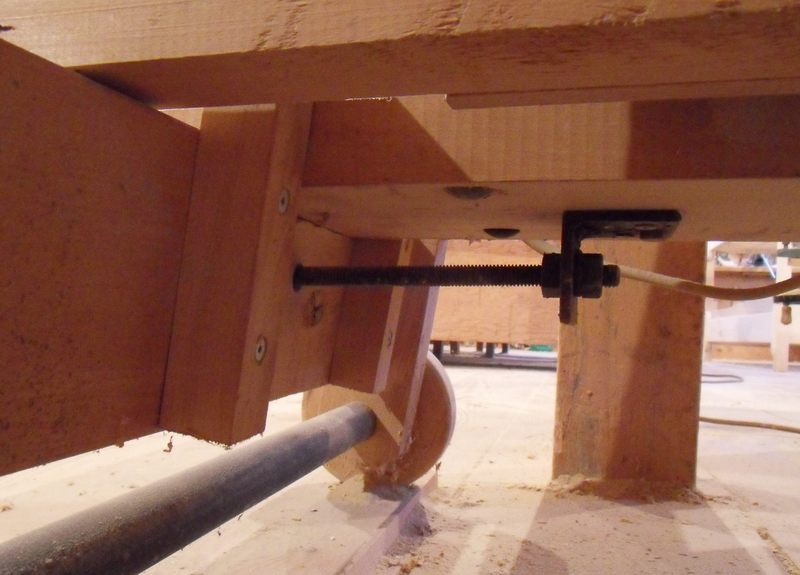 Most machines that use flat belts don't have a tracking adjustment. They are made precisely enough to make that unnecessary. But this is a wooden machine using a worn out timing belt as a drive belt, so having a facility to adjust belt tracking helps.