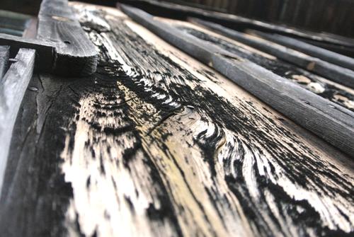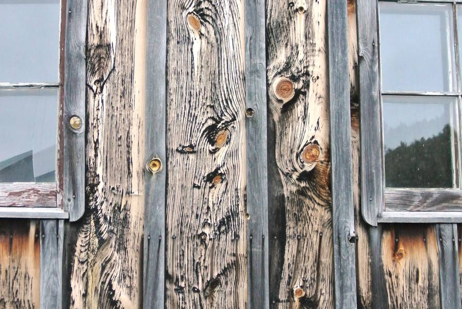 One normally expects weathered wood to be a uniform dark grey, but for some