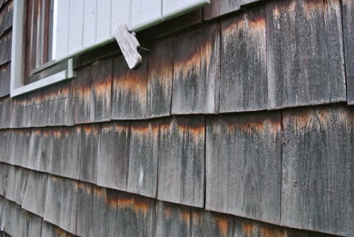 None of the wood on the workshop ever received any wood preserver, stain, or other treatment.