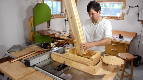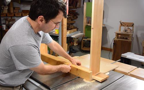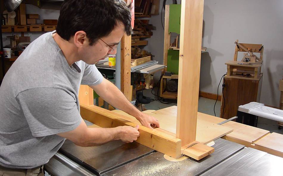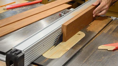 I'm cutting some mahogany veneer for the front, on the table saw. I'm using