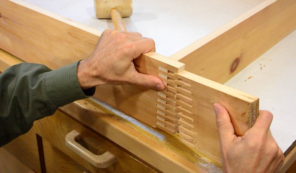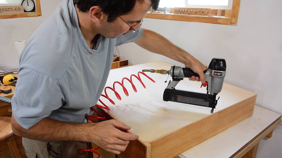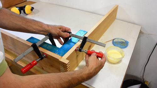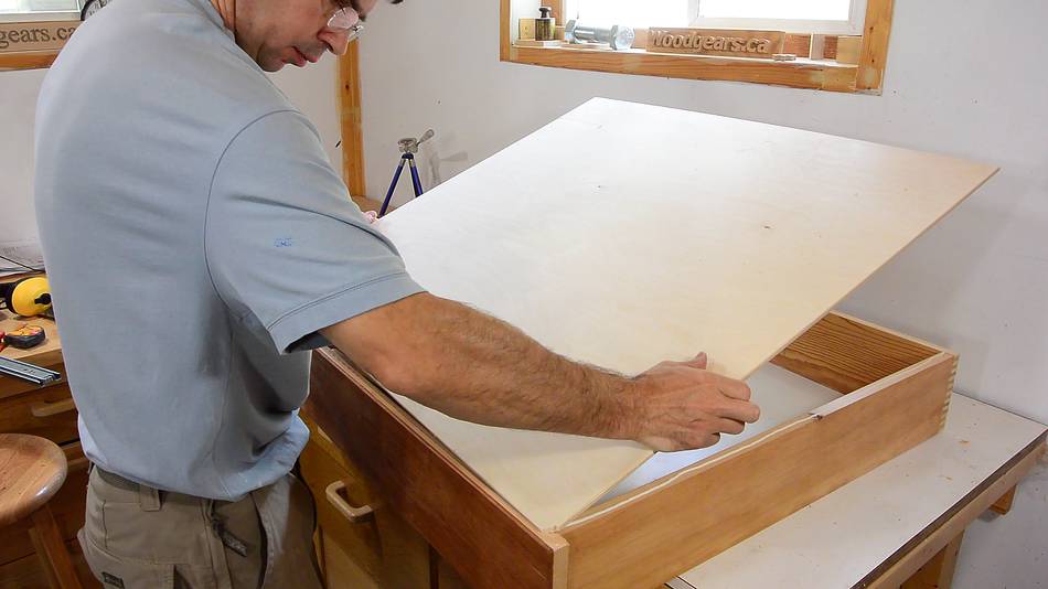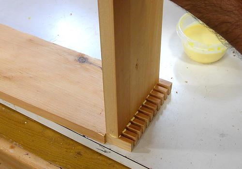 Finally, installing the bottom. The bottom fits into a rabbet on the front and