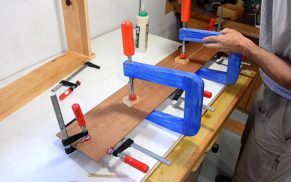 With the veneer in place, I put a piece of carpeting on it, then a board,