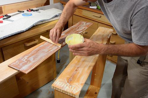 Applying glue. I put the two pieces on top of each other so I could apply glue
