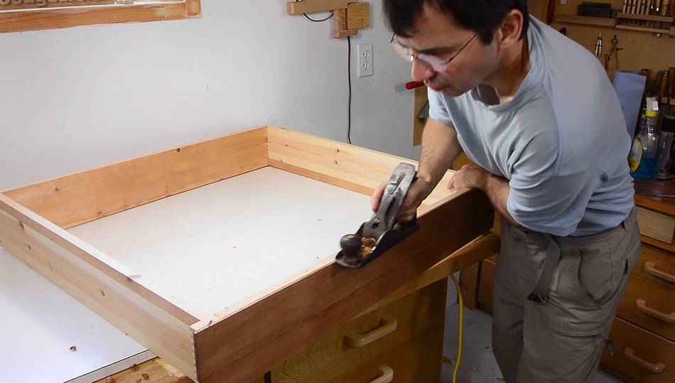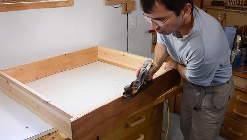 Afterwards, I used a hand plane to flush trim the veneer on the top and bottom.