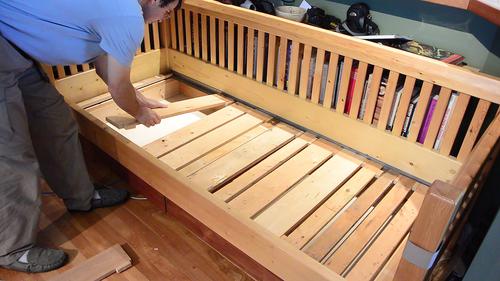 in the bottom of the daybed. These brackets clamp onto the rails with wood screws