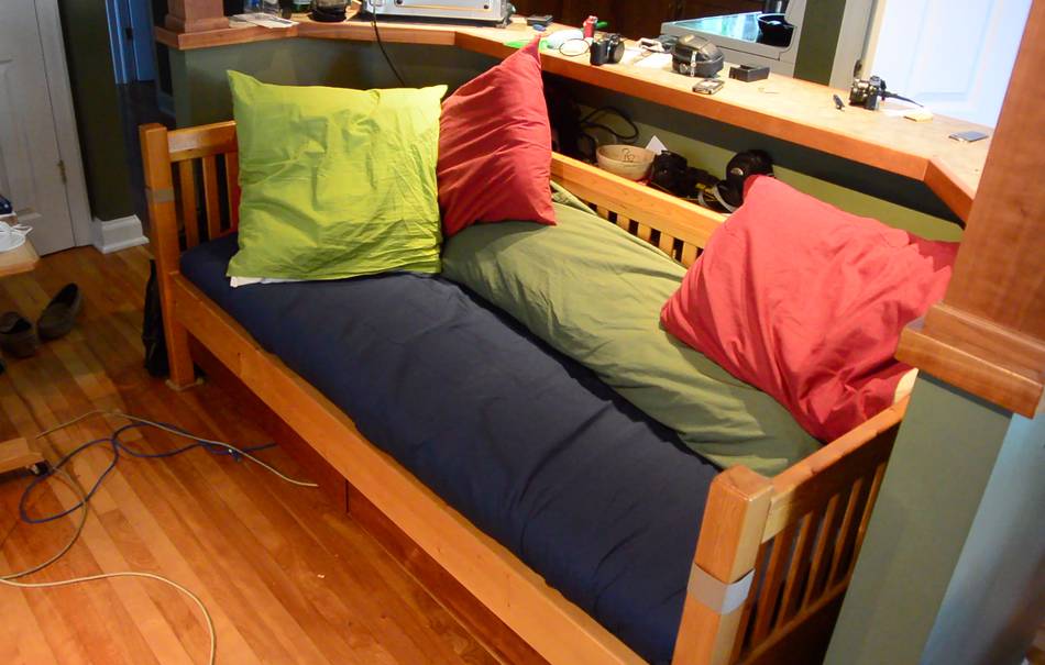 And with the mattress and pillows back on, it looks much like before. The dark colour of