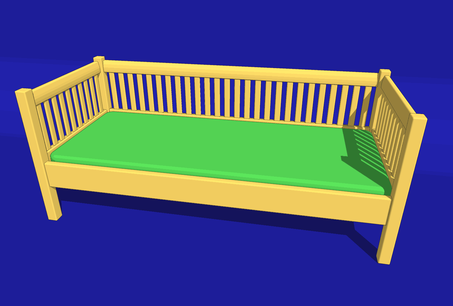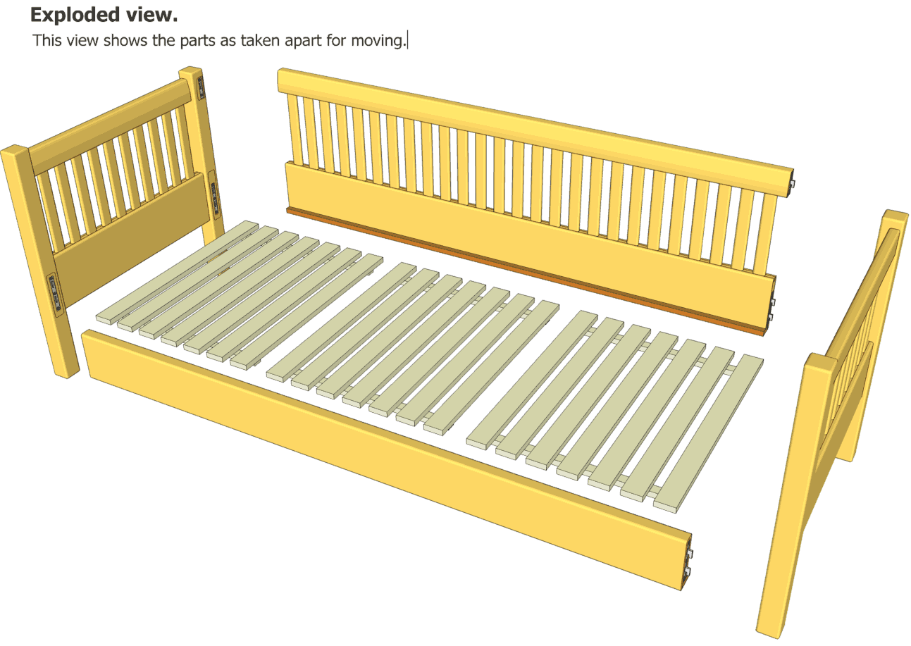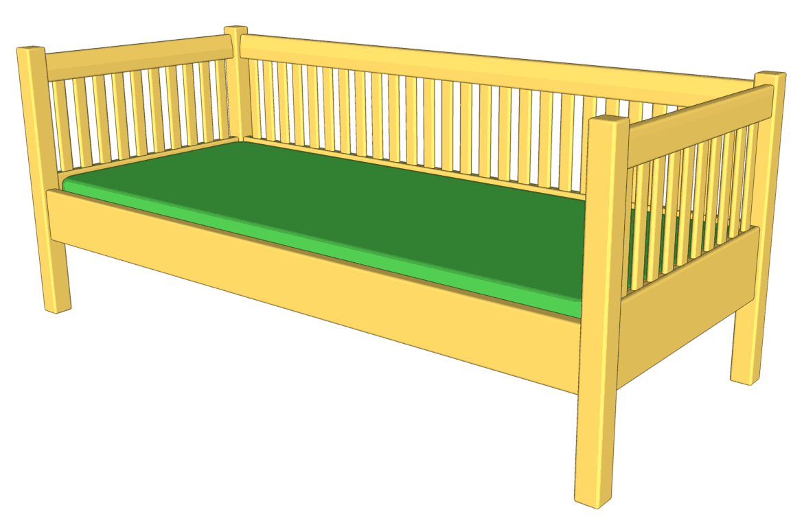 You can also download the daybed plans SketchUp CAD model. You will need to download the free Google SketchUp to open the CAD model.
