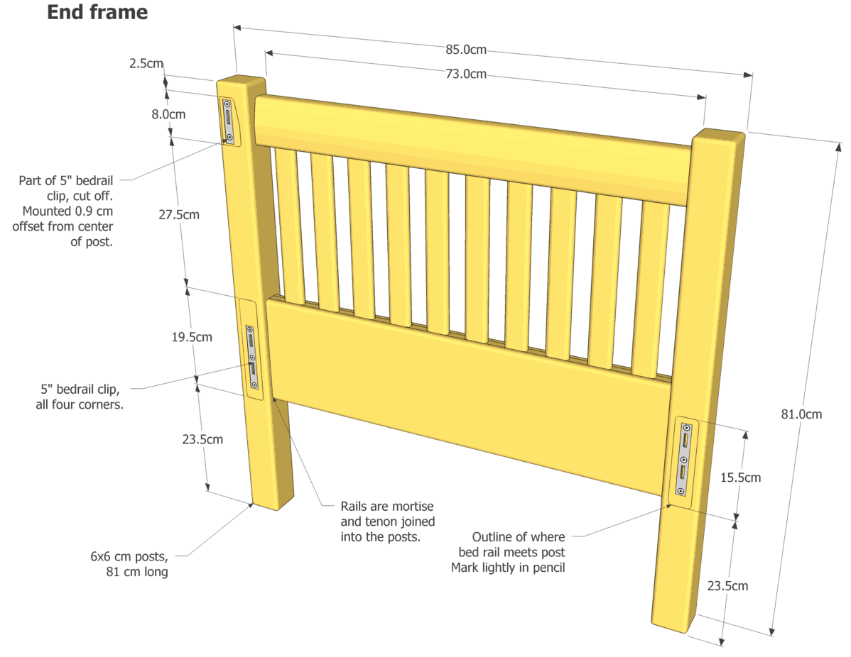 Note that the outlines of the rails that butt onto the end frame are marked in this drawing.