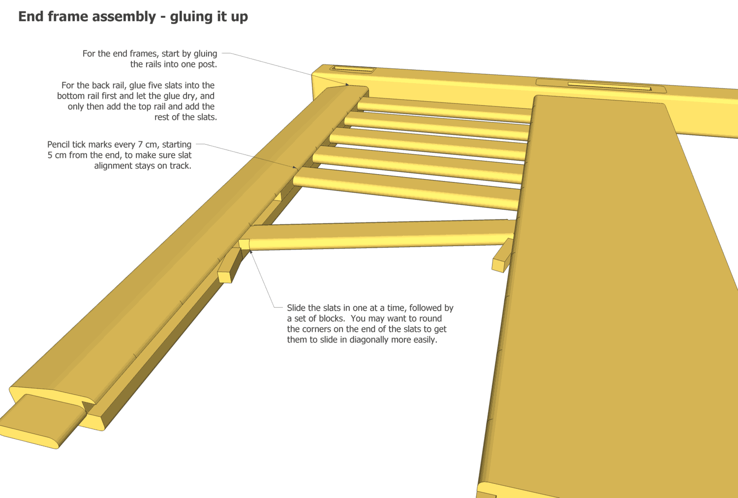 Then glue on the top rail, and proceed as with the end frames.