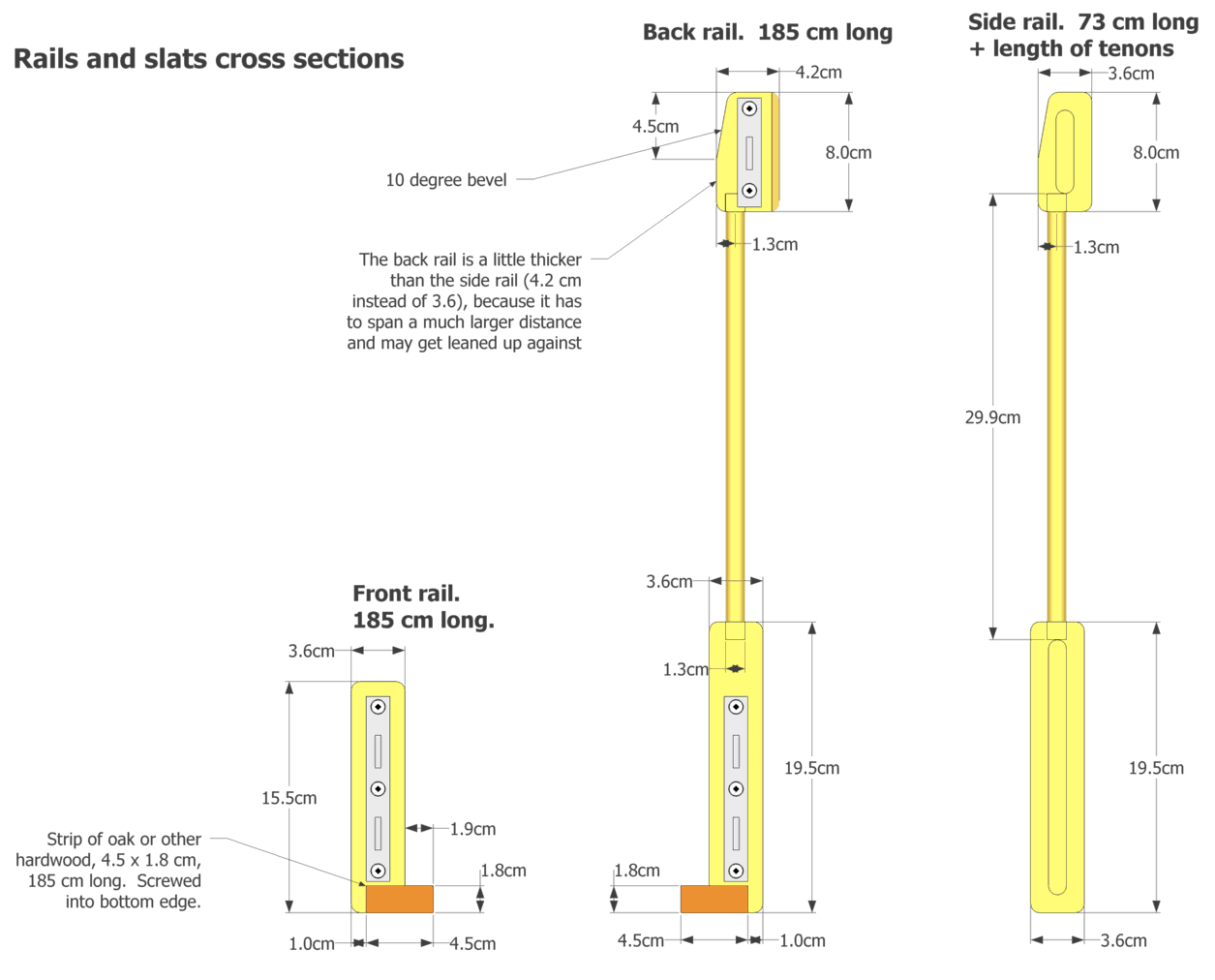 Except for the top rail for the back part, all the rails can be cut from construction lumber.