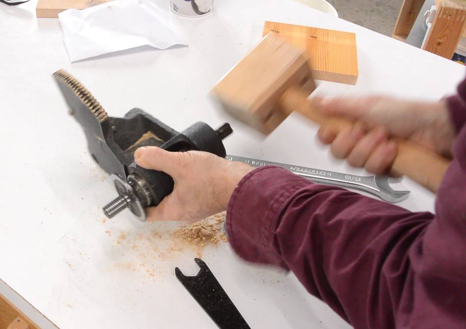Then tapping on the shaft with a wooden mallet to push the shaft and front