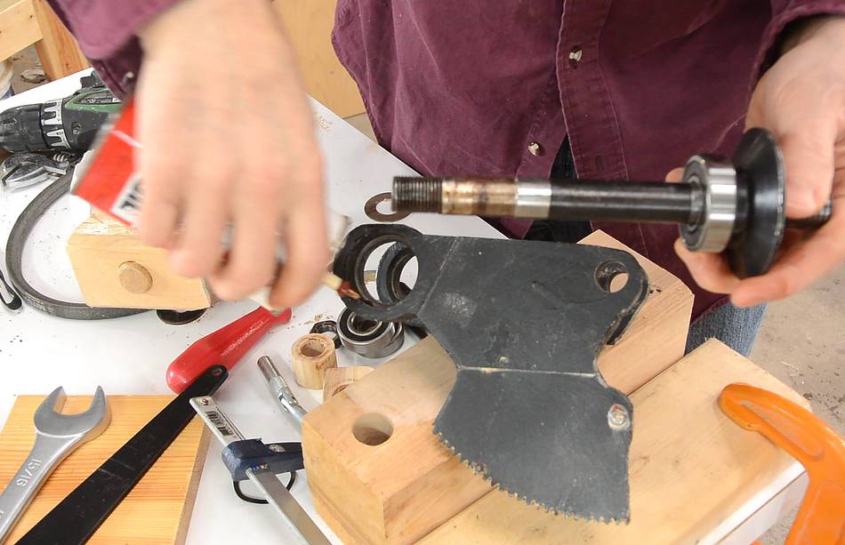 ... then put one of the old bearings on the other side to help keep the shaft aligned
