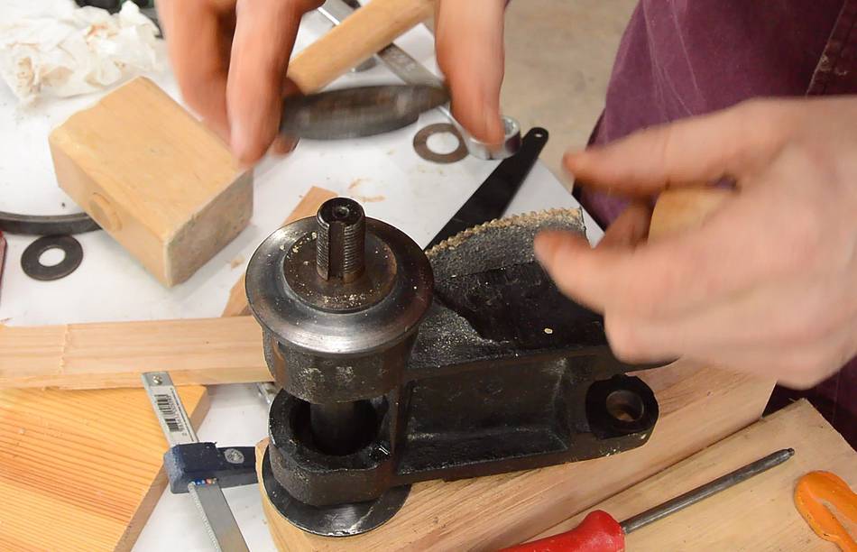 I made a quick jig to hold the arbor and wrench, and